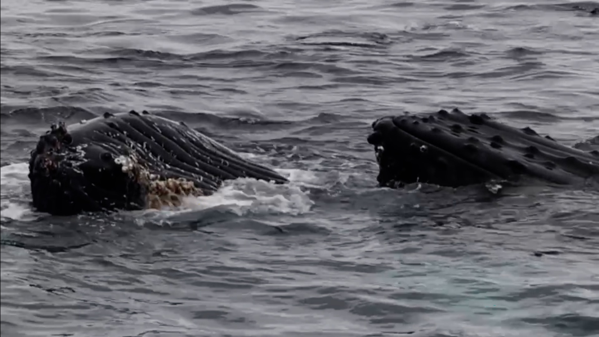 9am Humpback whales with Sea Lions, playing with kelp and spy hopping. Northern Fulmars, Red-necked Phalaropes adn Rhinoceros Auklets
